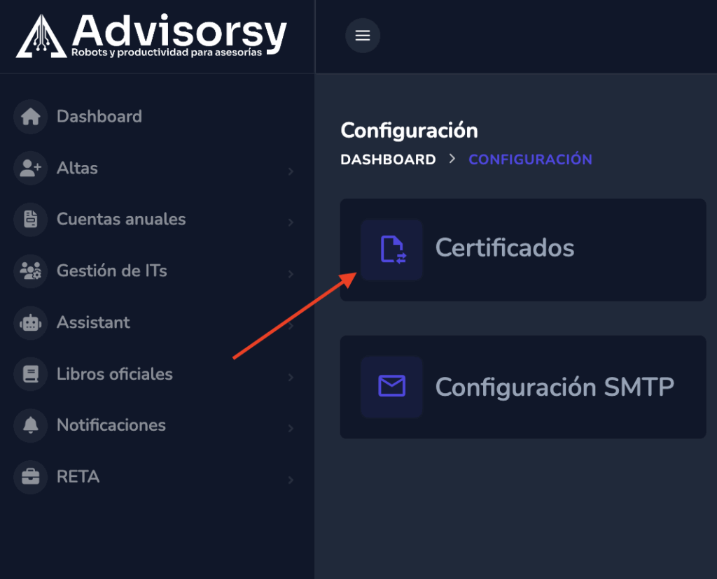 Para poder acceder al gestor de certificados tu usuario necesita permisos de acceso a la configuración de tu instancia. Consulta con el administrador de tu asesoría si no tienes permisos.
